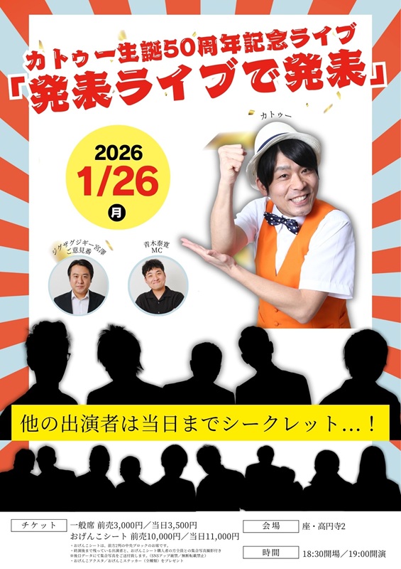 座・高円寺2カトゥー生誕50周年記念ライブ「発表ライブで発表」